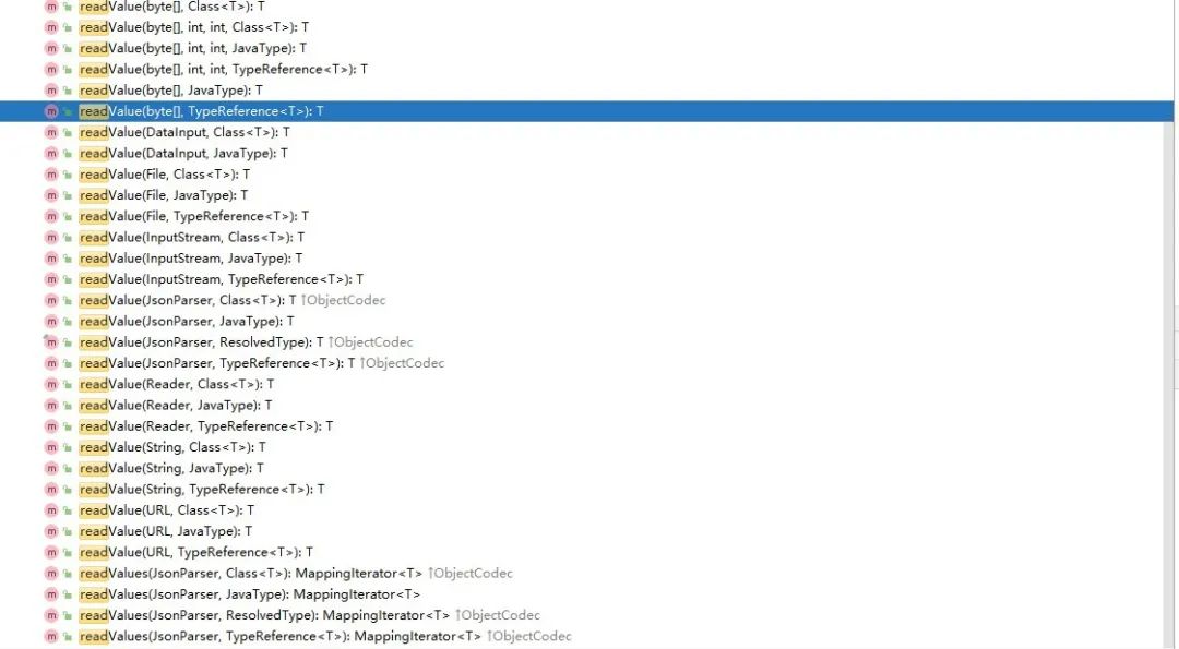 我们以首个参数为byte的为例进行研究,首个参数的类型我们可以理解为如何将JSON给ObjectMapper。