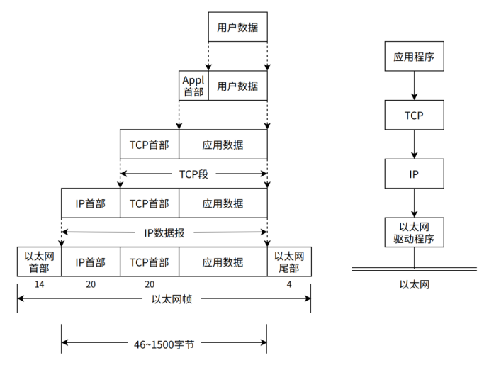 面向字节流:应用程序和TCP的交互是一次一个数据块(大小不等),但TCP把应用程序看成是一连串的无结构的字节流。TCP有一个缓冲,当应用程序传送的数据块太长,TCP就可以把它划分短一些再传送。 面向报文:面向报文的传输方式是应用层交给UDP多长的报文,UDP就照样发送。因此,应用程序必须选择合适大小的报文。
