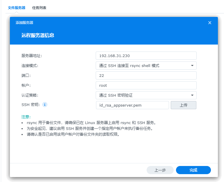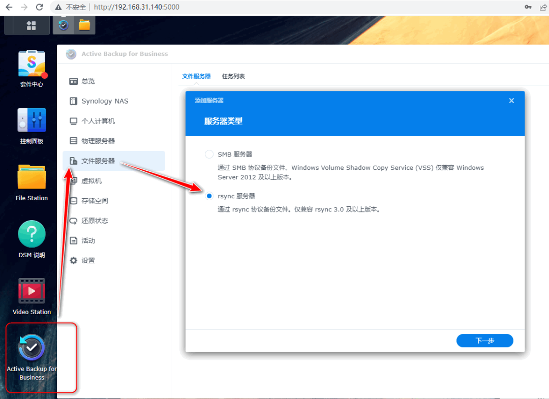 2、群晖NAS上配置ABB文件服务器rsync备份计划