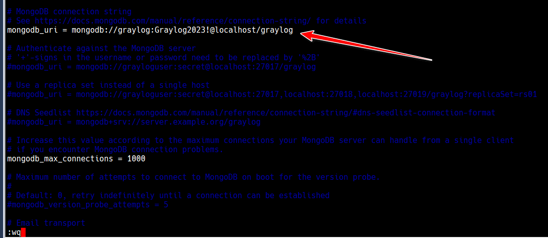 mongodb_uri = mongodb://graylog:Graylog2023!@localhost/graylog