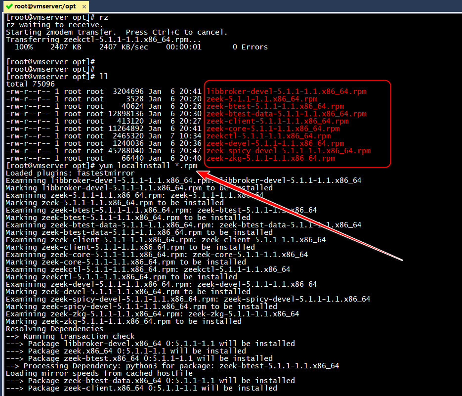 由于网速问题,我这边手动提前下载好zeek相关的rpm依赖包