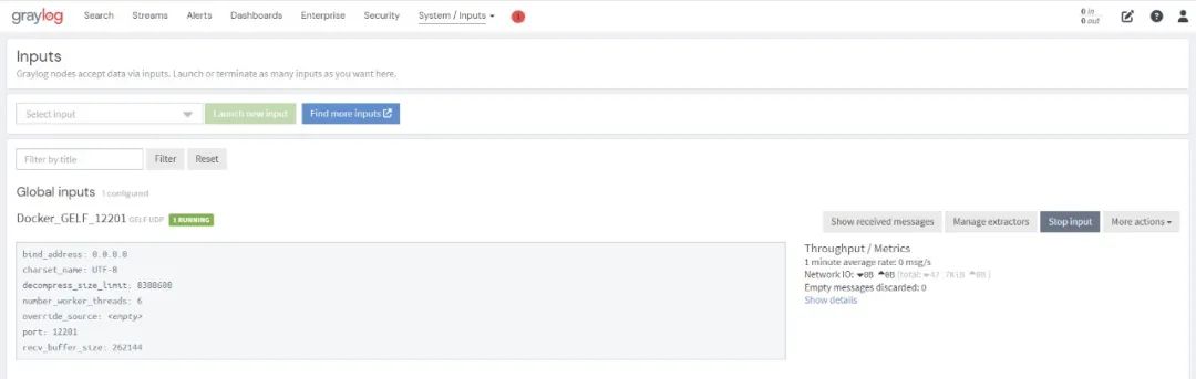 3、Graylog上面配置GELF Input,Stream,查询模板