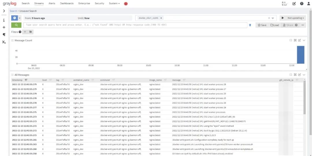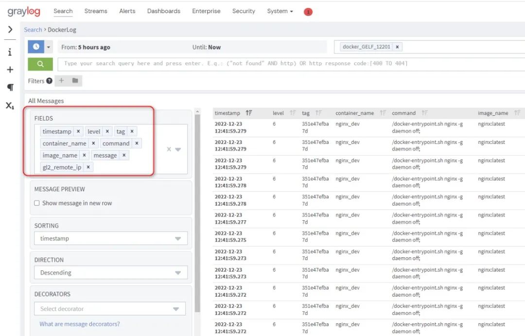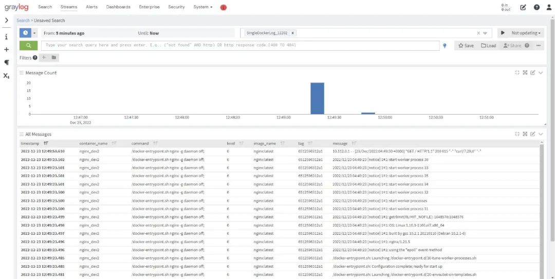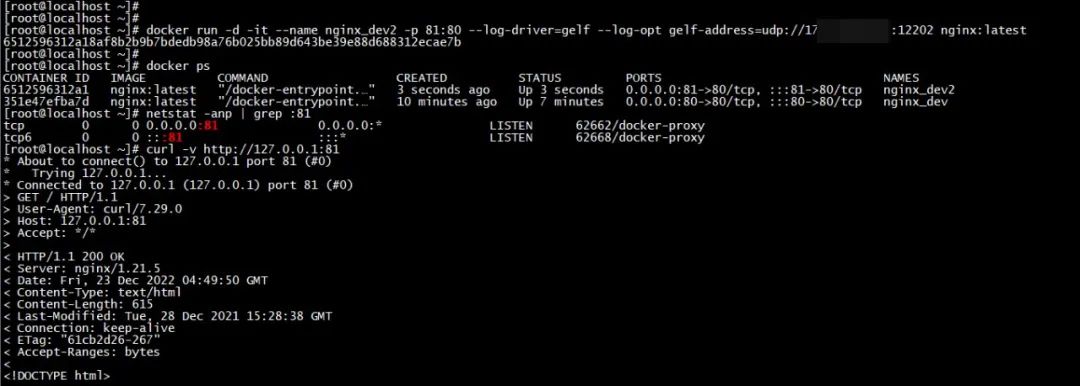 docker run -d -it --name nginx_dev2 -p 81:80 --log-driver=gelf --log-opt gelf-address=udp://{GraylogServerIP}:12202 nginx:latest