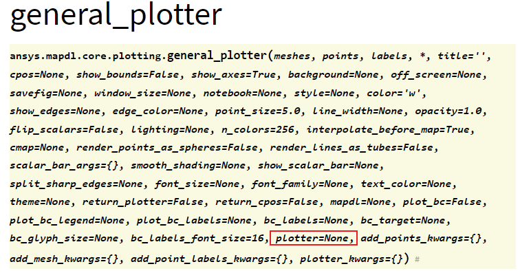 请问pyansys开发老6,这个plotter参数在哪里?搜索整个文件内容也没找到plotter参数,河里蟹~