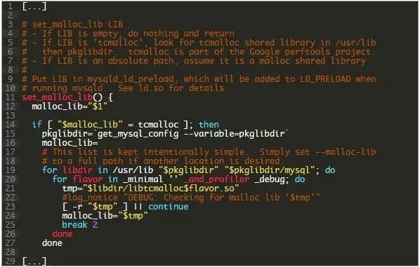 我们可以通过使用–malloc-lib=LIB参数在服务加载时,预先加载一个库文件,这个参数同样可以通过配置文件my.cnf来设置,设置位置在“[mysqld]”或“[mysqld_safe]”部分。