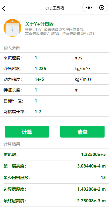 另外CFD工具箱中的计算公式也会更新,目前代码已经提交等待审核中。正在为CFD工具箱添加一个物性查询功能,预计近期上线。