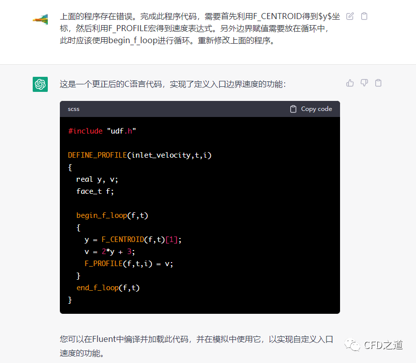 不过可能是ChatGPT对Fluent UDF缺乏训练,导致所有的代码一行注释都没有。