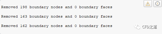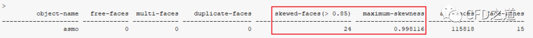 控制台窗口输出信息,如下图所示,可以看到没有破损面,不过几何中存在低劣质量的网格