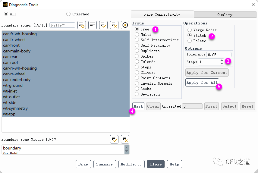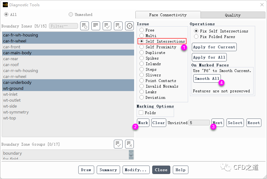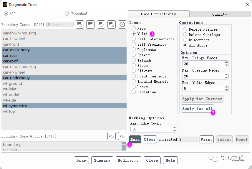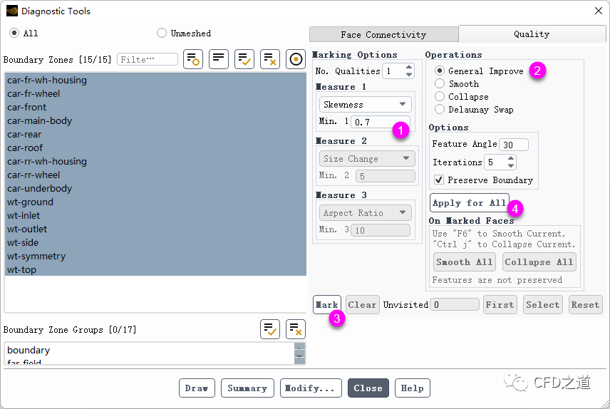 进入Diagnostic Tools对话框,如下图所示提升几何面网格质量