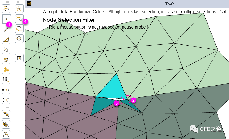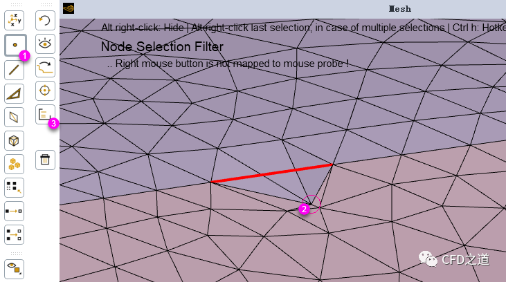 如下图所示顺序,选择网格节点并点击set按钮