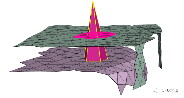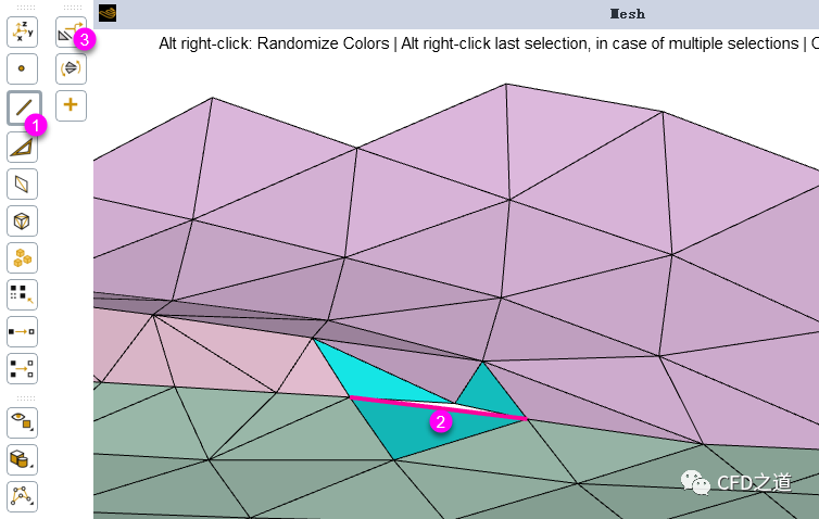 切换图形窗口中的颜色显示,发现下图所示一些网格面放置位置存在问题