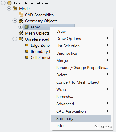 ,点击弹出菜单项Summary 查看网格统计信息