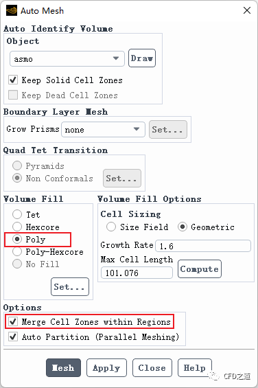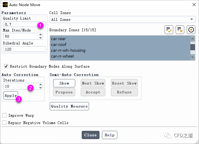 右键选择Cell Zones节点,点击弹出菜单项Auto Node Move… 打开节点移动对话框