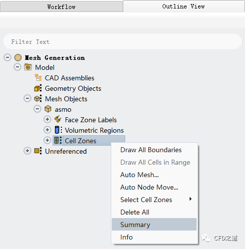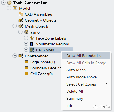鼠标右键选择模型树节点 Cell Zones