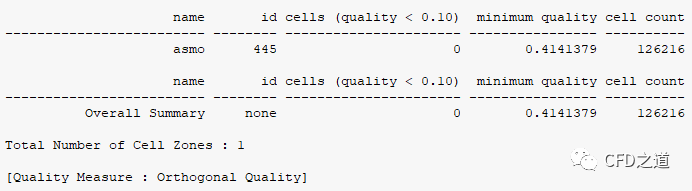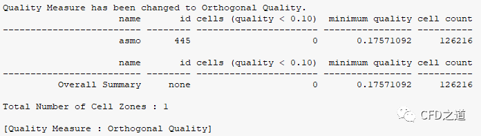 显示如下图所示信息,可以看到最低网格质量为0.17571092,这里的网格质量标准采用的是正交质量。