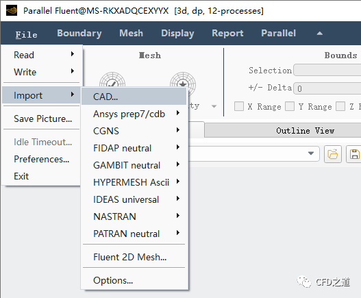选择菜单File → Import → CAD… 打开几何模型导入对话框