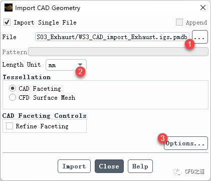 点击上一个对话框中的Import按钮导入几何模型。输入文件可从文末链接中下载。