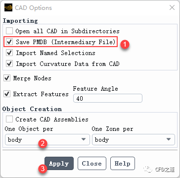注:PMDB是一种中间文件格式,它包含tessellation之前解释的几何数据。初始导入后,用户可以通过读取此文件(而不是原始CAD)来更快地更改tessellation.选项,以避免重新解释几何数据