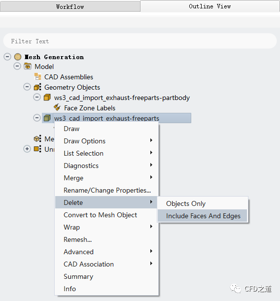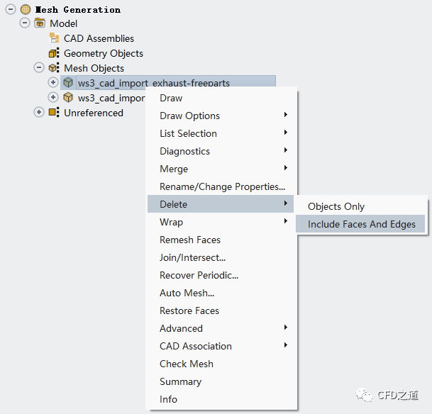 ,点击弹出菜单项Delete → Include Faces And Edges 删除该部件