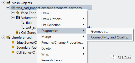 右键选择模型树节点,如下图所示打开网格诊断对话框
