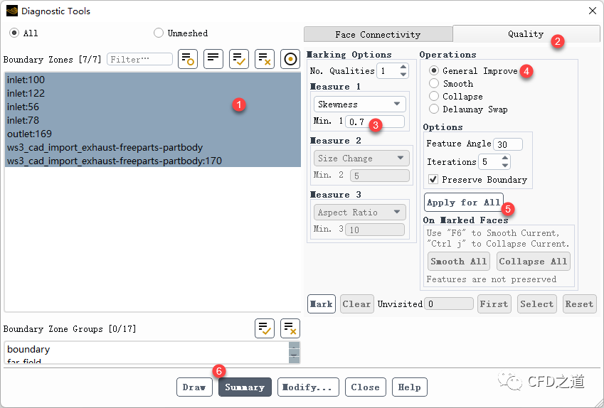 注:在进行体网格生成之前,通常都需要对面网格质量进行优化,尽可能的提升面网格质量。