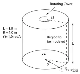 圆柱形封闭腔体底面半径1m,高度1m,其顶盖以角速度1rad/s旋转。腔体中介质密度1 kg/m3,动力粘度0.000556 kg/m-s,计算分析半径0.6m圆柱面上径向速度分布。采用轴对称旋转模型。