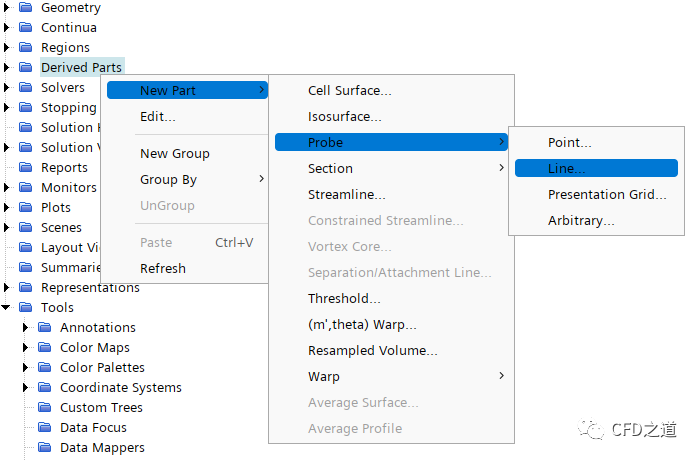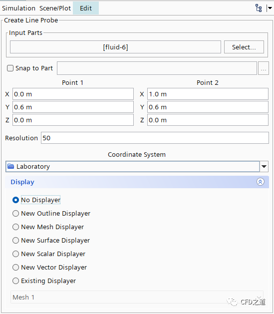 ,点击弹出菜单项New Part → Probe → Line…打开设置面板