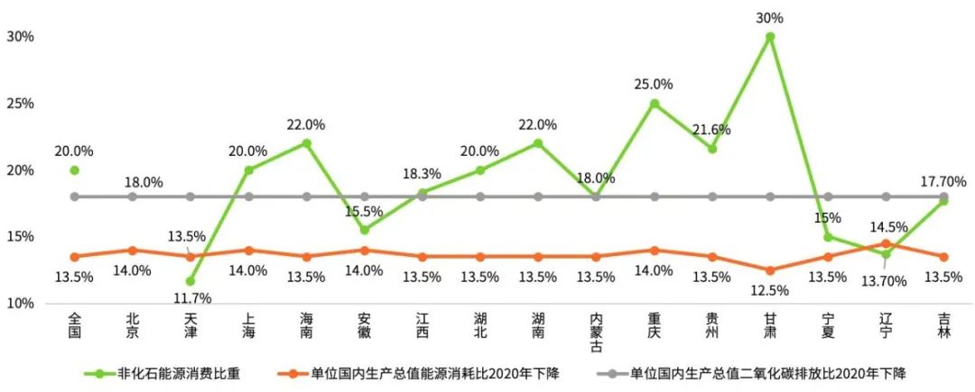 图:地方碳达峰2025年定量目标比较(来源:中国信通院)