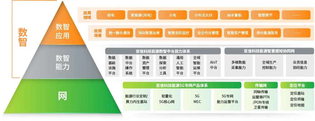 图:亚信科技“网数智”能源智能化解决方案体系架构在新能源集中式场站方面,亚信科技提供适配行业、基于5G专网的“网数智”能力底座,面向人员生产作业、工控数据采集、场站经营管理等应用方向深度融合,助力新能源发电企业真正落地无人值班、少人值守等运维方式。
