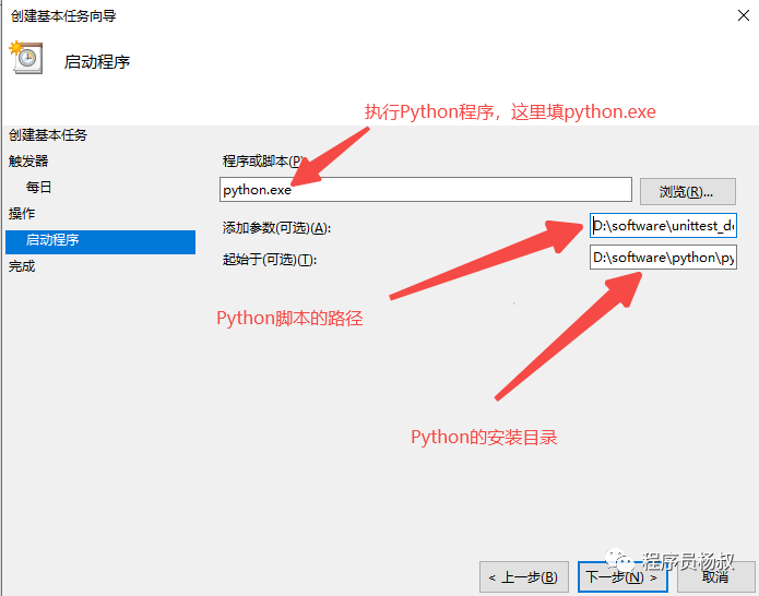 添加参数:文本框中填的是你的Python程序的完整路径,例如:D:\software\unittest_demo\test.py