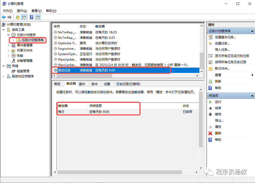 9、后续在“任务计划程序库”可以看到该定时任务,双击该任务可编辑修改: