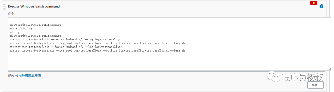 选择windows命令,输入和Windows CMD下同样的批处理脚本命令: