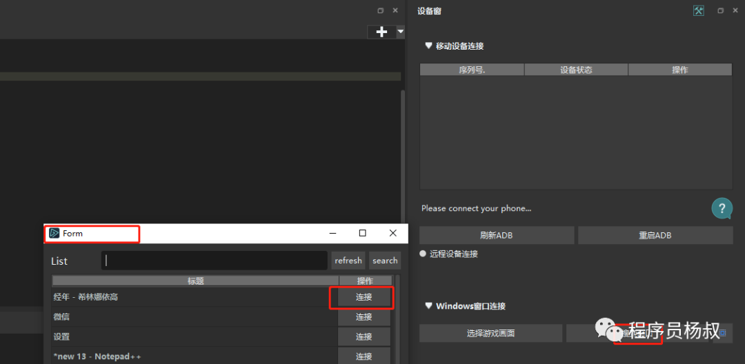 方式2:搜索窗口,在弹出的窗口list中选择要连接的窗口直接连接