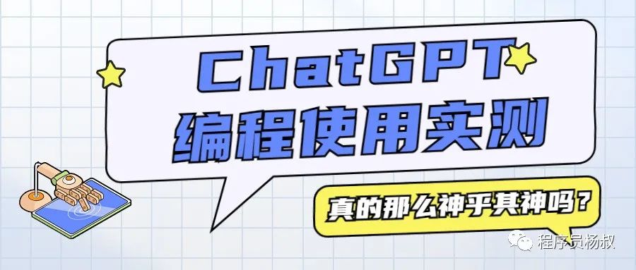 大家好,我是杨叔。ChatGPT最近很火,今天我们就来探索一下,ChatGPT是否真的能帮助我们写代码、写各类报告,程序猿们是否真的会因为它失业,真的有传说中的那么神乎其神吗?