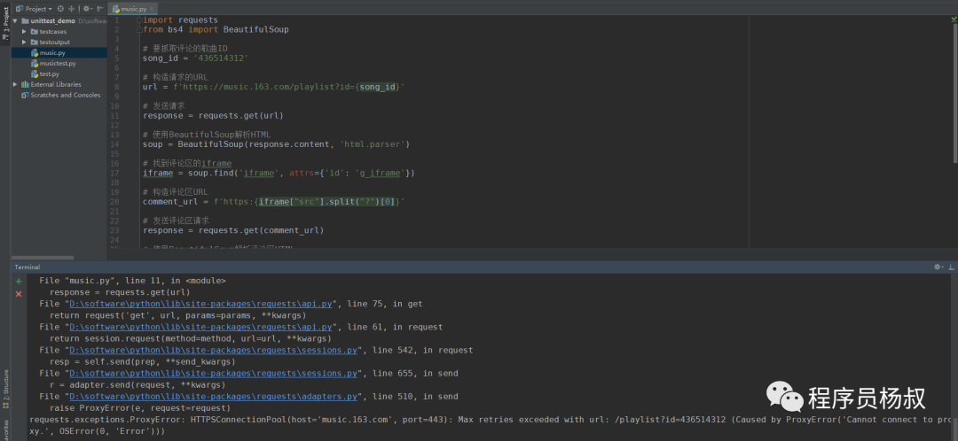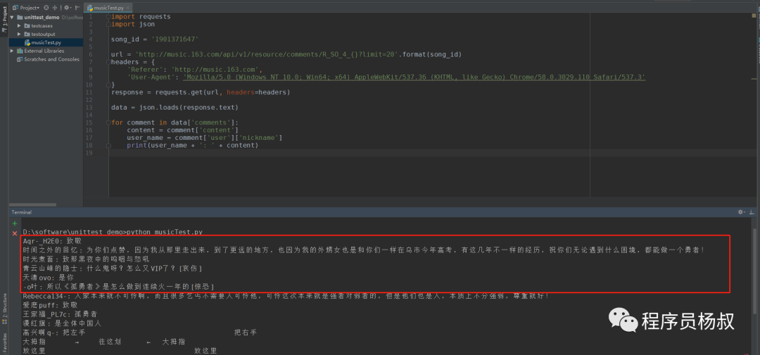 直接Copy代码到Pycharm中运行,看看是否可以正确抓取到歌曲的评论信息: