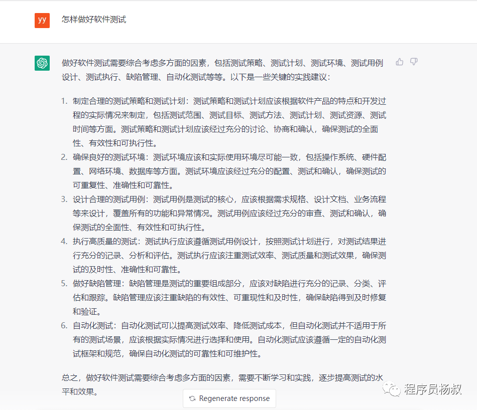 作为IT从业者,写各类报告往往是我们最烦,但又不得不面对的事情。因此我们再测试一下ChatGPT这方面的能力如何。博主作为测试作业者,先来问一个最基本的问题:怎样做好软件测试?