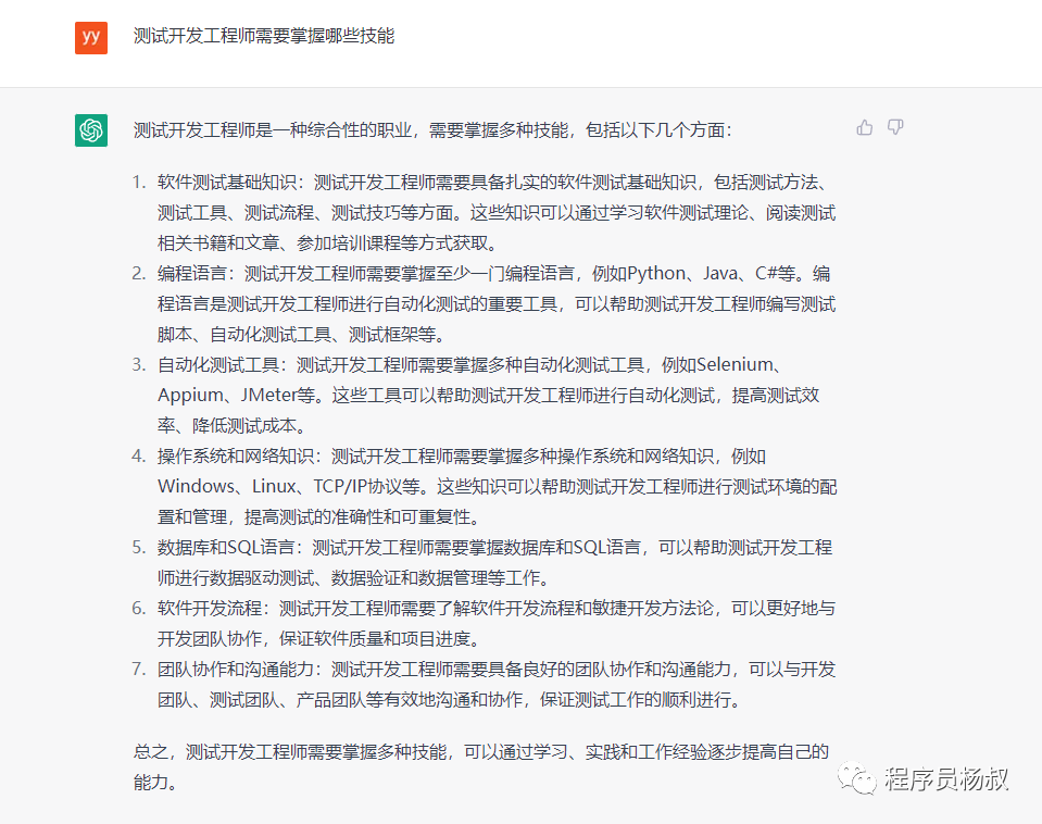 接下来进一步提问,我们想成为测试开发工程师,需要掌握哪些技能: