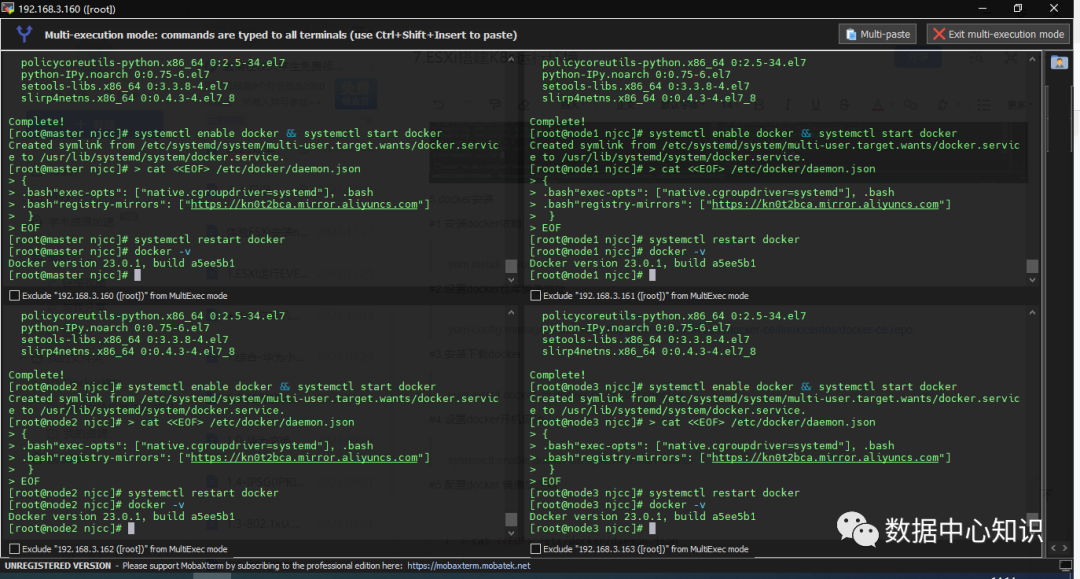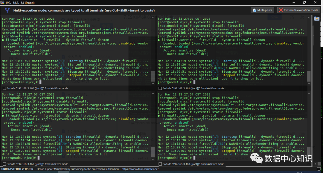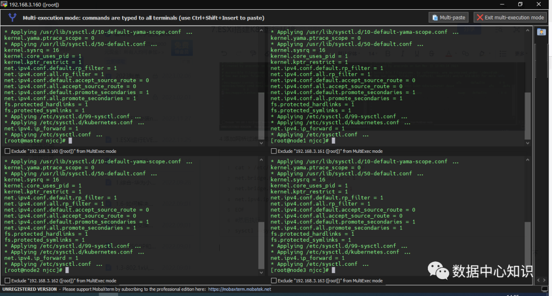 全部登录后,可使用MobaXterm工具带的Muti-execution功能批量命令行操作!