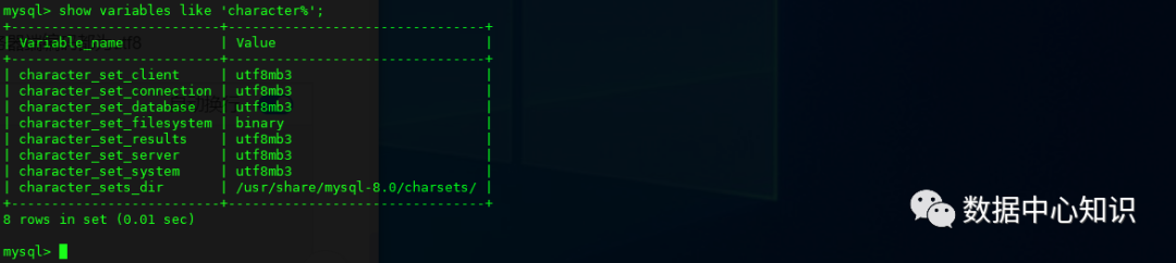 再次登录mysql查看show variables like 'character%';,已全部支持utf8中文格式