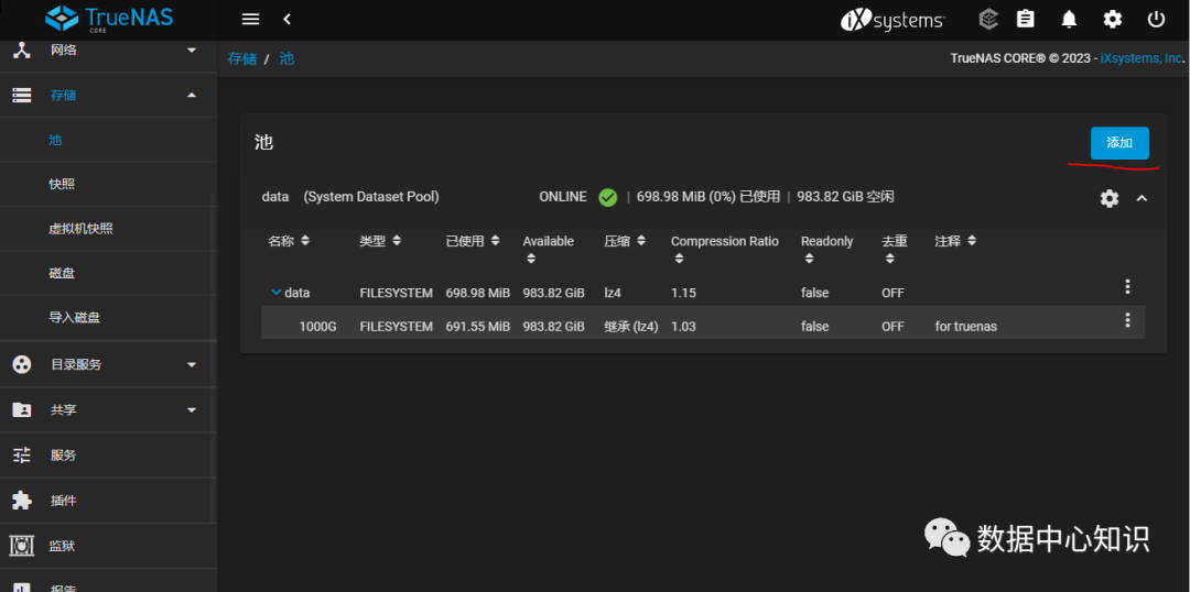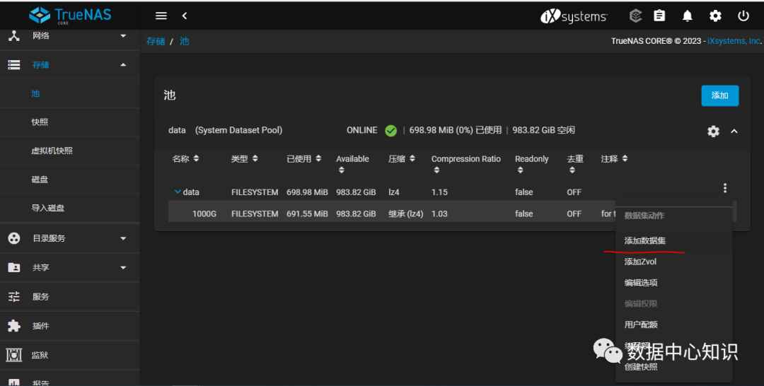 2.添加池-点击添加-创建池(略)-添加数据集(略)