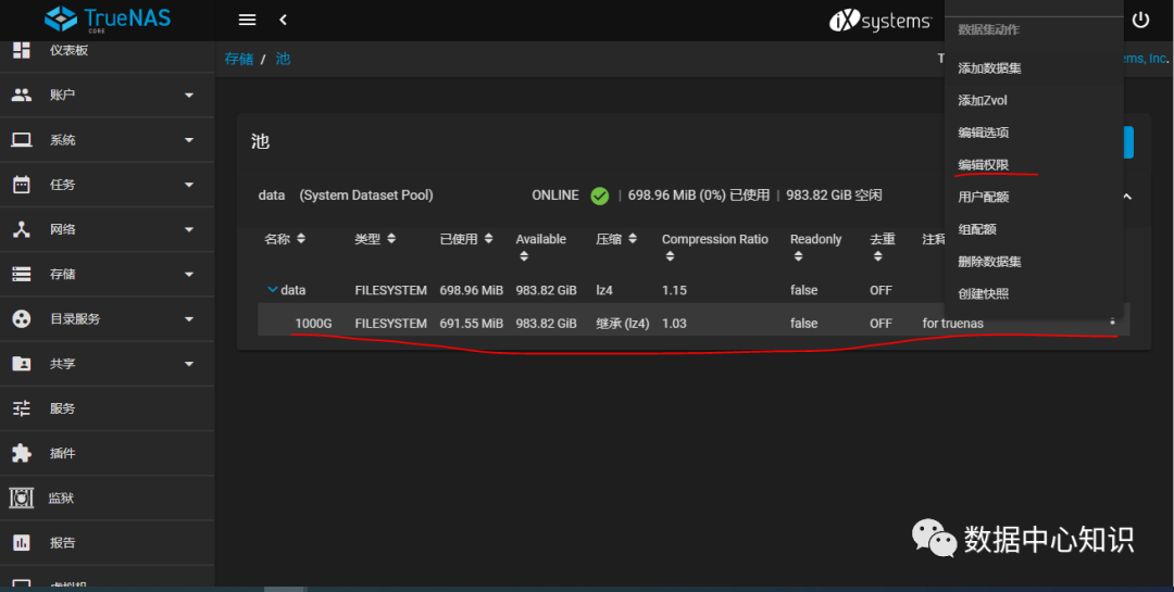 4.返回到池-1000G-右侧展开-编辑权限(略)