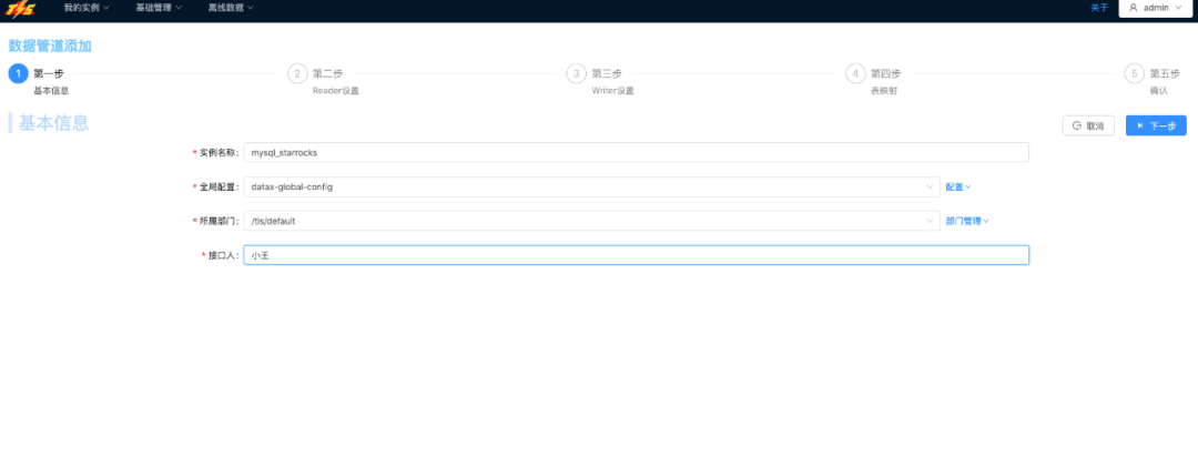 3. 添加流程一共分为5步,第1步添加数据通道的基本信息