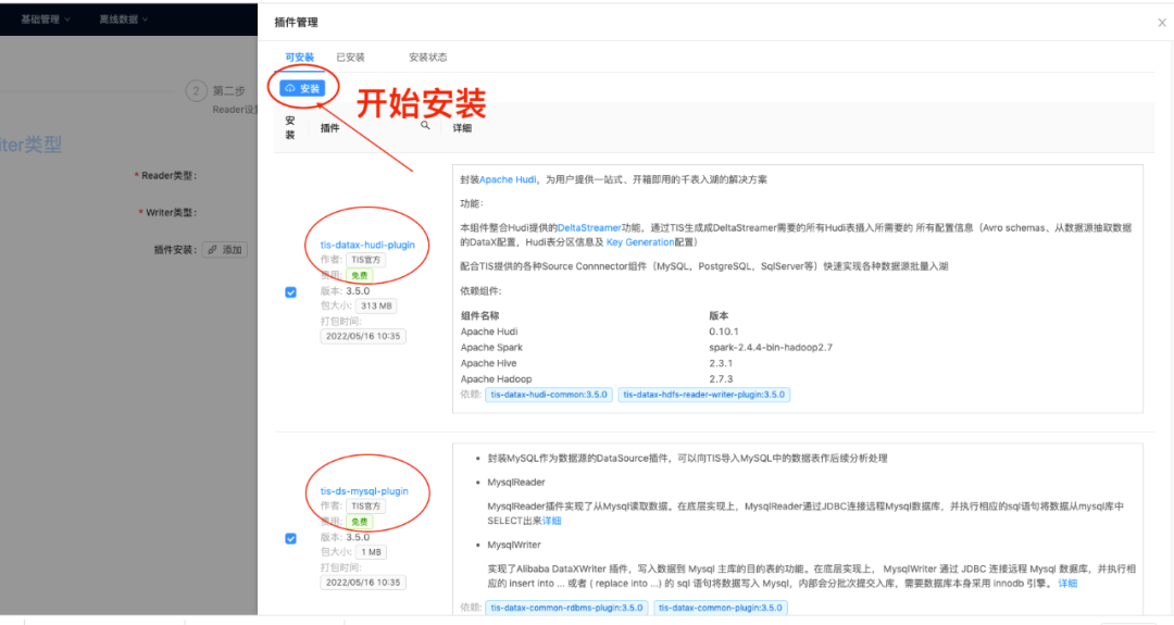本文相关的Hudi和MySQL以及Flink增量同步、DataX批量同步相关的功能插件都是在TIS运行时按需加载并热部署生效的。