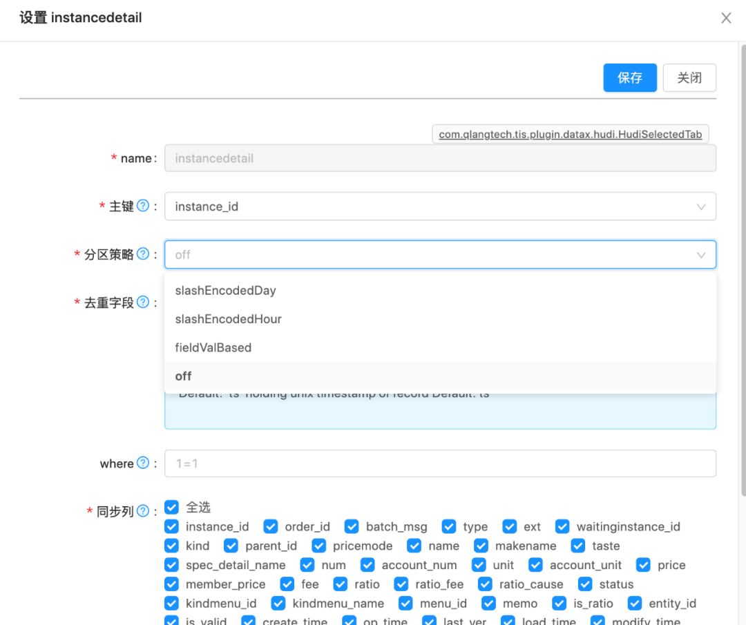 TIS将Hudi中的各组件进行优雅地封装,并且基于TIS的数据字典组件自动生成Hudi DeltaStreamer[2]及 Flink Stream API[3]运行所需要 配置,Hudi数据表相关的配置都是在TIS的UI界面上完成操作,实现了轻点鼠标完成构建流程,实现开箱即用从而大幅提高构建Hudi数据湖的效率。