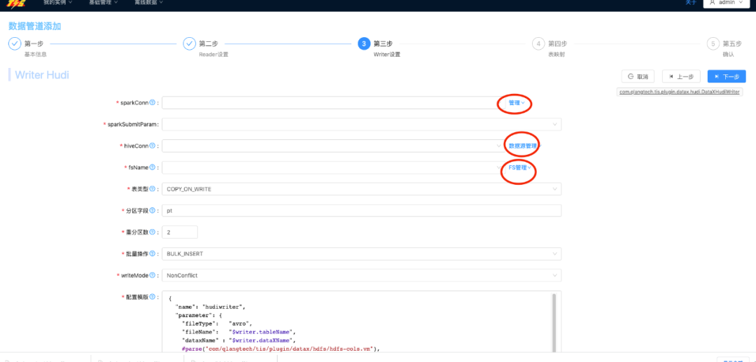 按钮,然后点击下一步,进入Hudi Writer表单设置