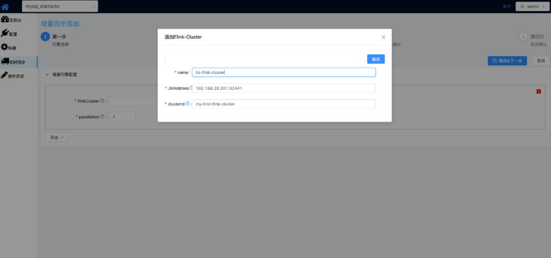 2. Flink集群启动之后,在TIS中添加Flink集群对应配置,请妥善设置Flink相关的
