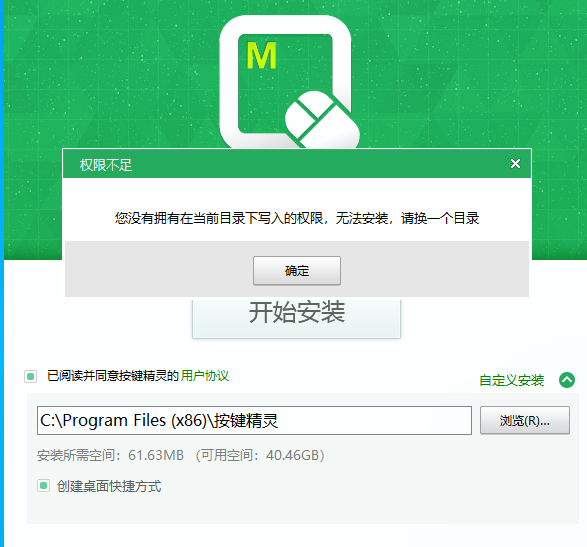 如果你的系统只有一个分区,双击下载的安装包,可能会出现下面的提示。这个是系统安全设置里面的。对于相应目录的权限保护。