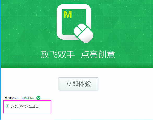 很快中间的进度条就完成了,出现下面的界面,请大家注意打框的地方,如果直接点按钮,那么360安全卫士就自动安装上了。如果不想安装的话,务必将小框点掉。