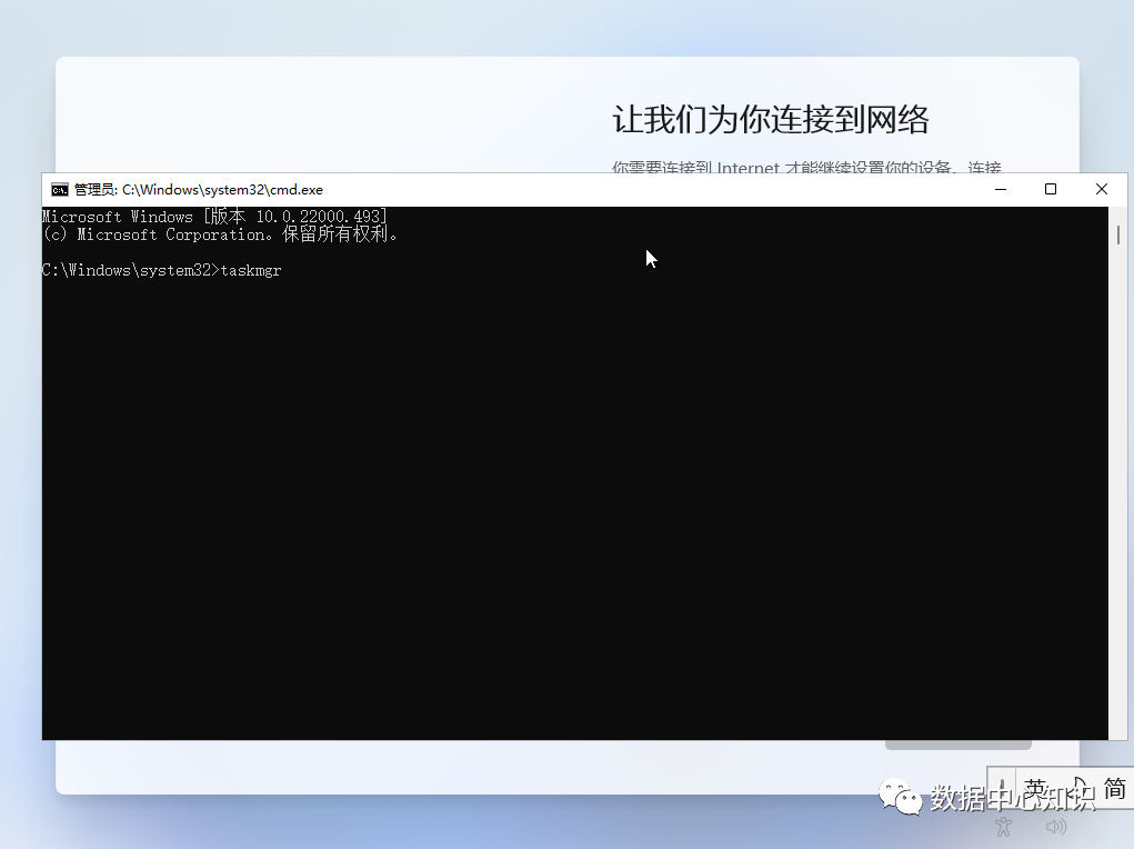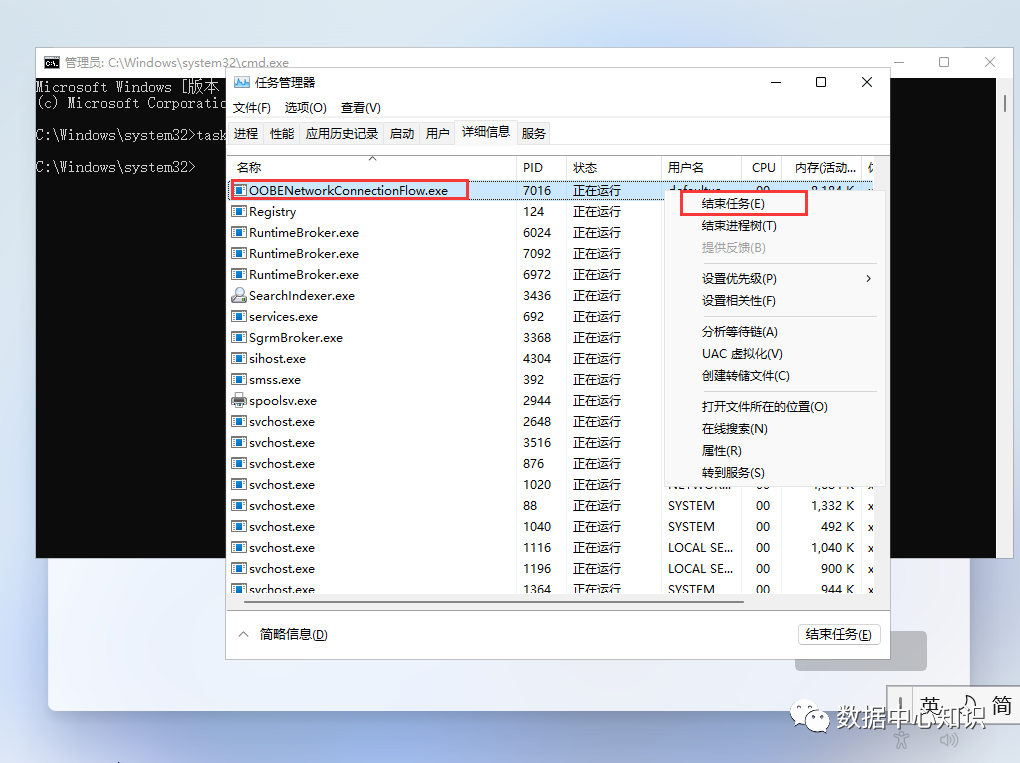 出现此界面选择结束进程,然后关闭任务管理器和CMD回到页面,联网激活就跳过。