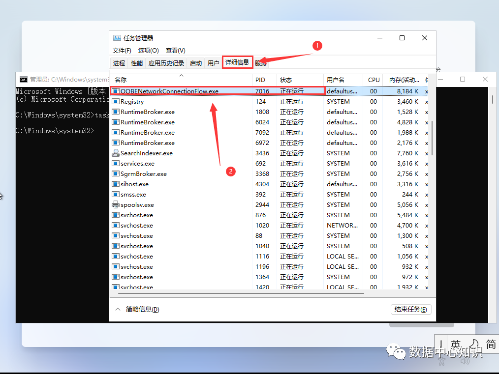 在任务管理器“详细信息”界面,选中OOBENetworkCoectioFlow.exe程序。